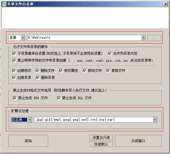 D盾 网站防篡改 (目录黑名单功能) 入侵的方法多种多样,网站给入侵首页被改,也已经是常见的事! 通过 D盾 可以实现网页的防篡改。 如果只想首页文件不给修改,可以这么设置 ![]() ![]() 之后按 “应该设置”,生效后,测试一下 ![]() 不能写入了,达到效果. 而黑客的行为已被记录了下来,当发现有人想改写你的文件时,你大概知道,网站可能问题了,需要注意了! ![]() 如果想整个目录不给写入 ![]() 如果只允许一些扩展名的文件写入,可以这样处理 ![]() 最后要说的是,此功能是防止脚本篡改文件的。你在3389和FTP下是能修改的,这些需要各位注意的! |